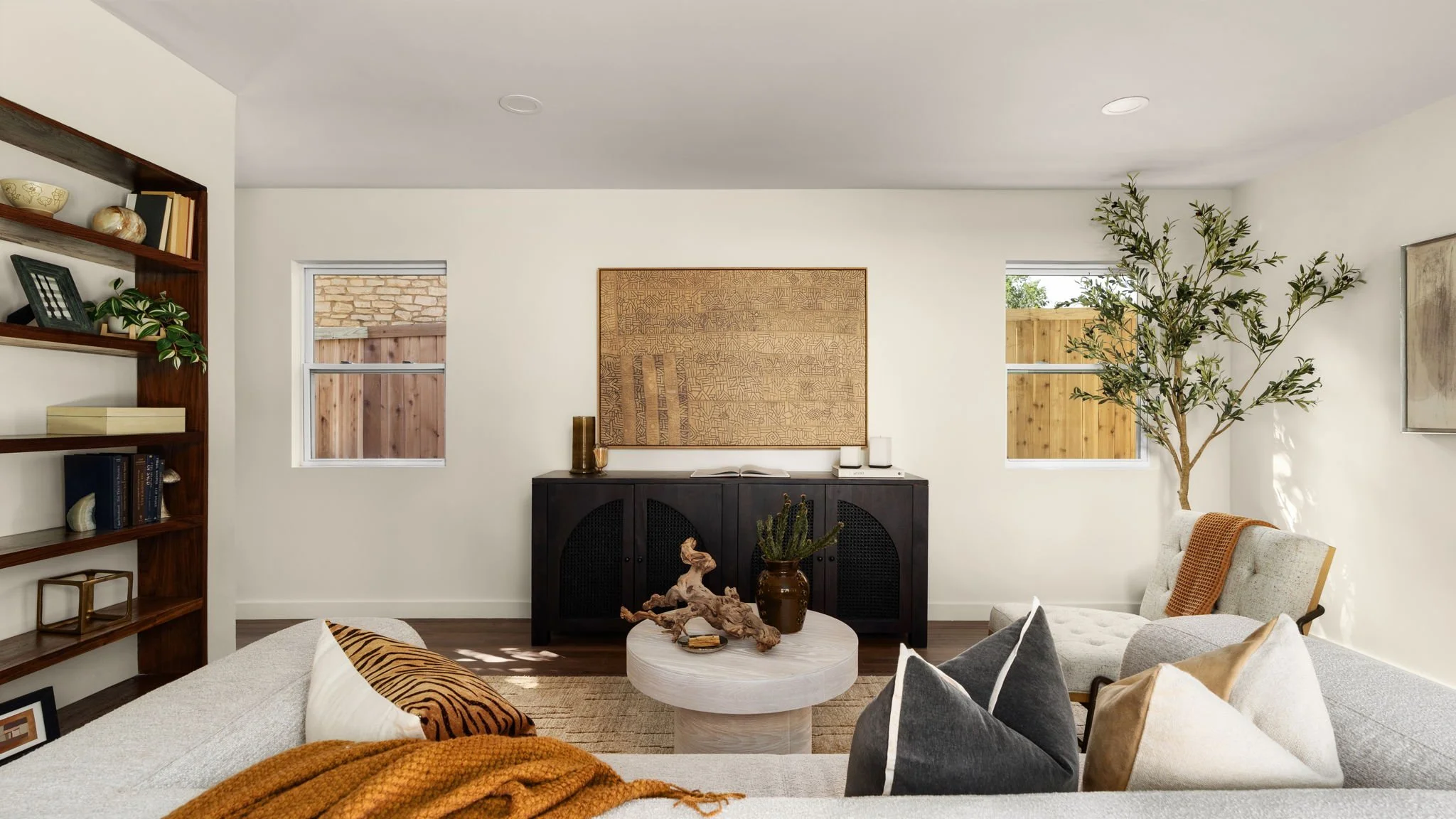 This fully renovated 3-bedroom home with an office blends modern organic design and luxury upgrades throughout. The kitchen is a showpiece with a Taj Mahal Quartz waterfall island, custom tiled vent hood, walnut cabinetry, built-in wine fridge, and ample storage. A stucco fireplace anchors the living room, while the spa-like primary suite offers a massive tiled shower, soaking tub, tiled ceiling, and custom walk-in closet. Additional highlights include new roof, dual HVAC, appliances, solid core doors, siding, and landscaping. Zoned to top-rated RRISD schools and just minutes from The Domain, Q2 Stadium, and Austin’s tech corridor, this home delivers elegance, comfort, and an unbeatable location.